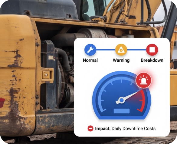 Engine hours, service intervals, and fault indicators trigger maintenance alerts before the machine fails on site. Fewer emergency repairs. Less project delay.